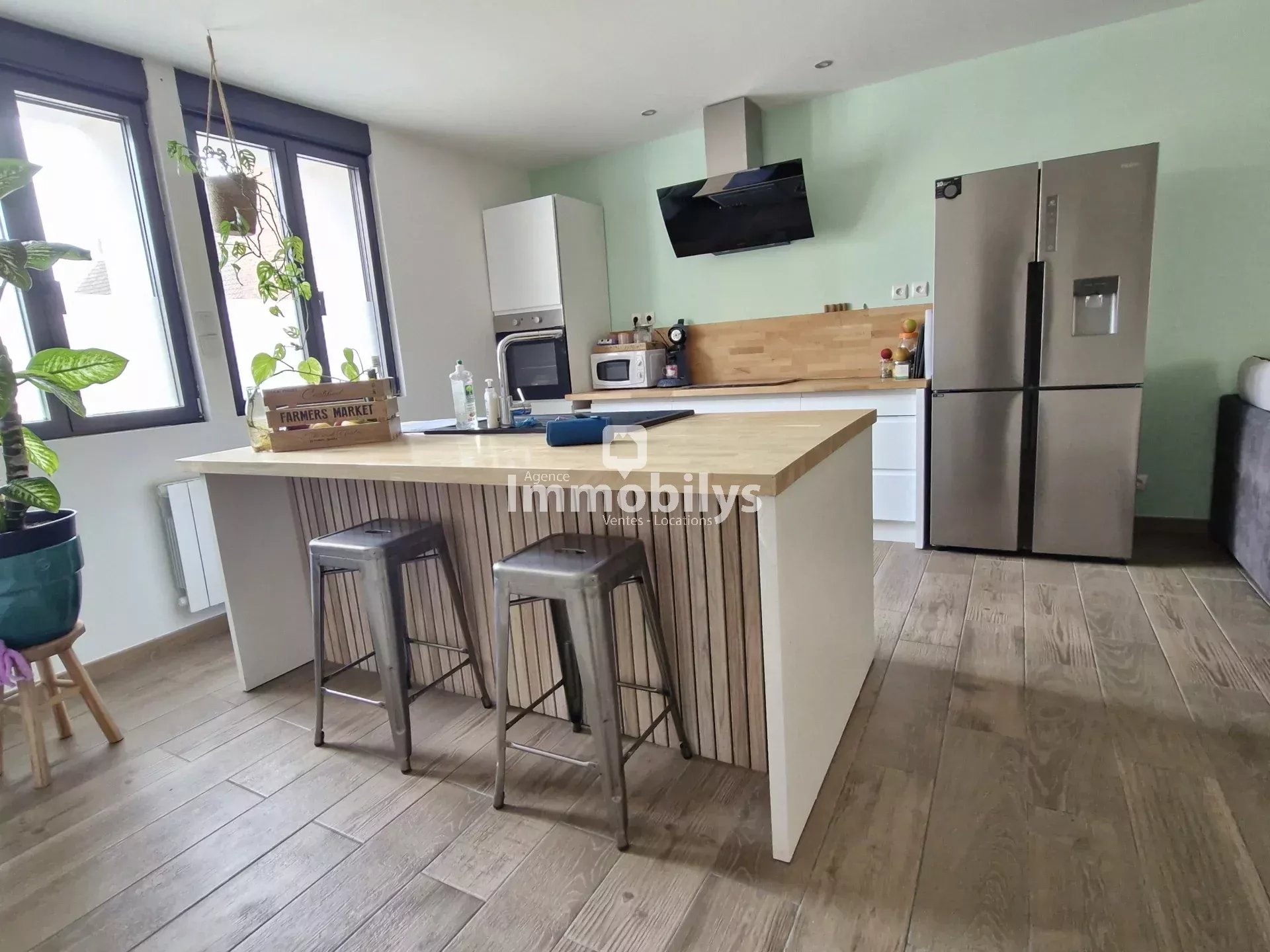 La maison dispose également d'un garage, d'un espace buanderie et d'un extérieur avec terrasse et jardinet.