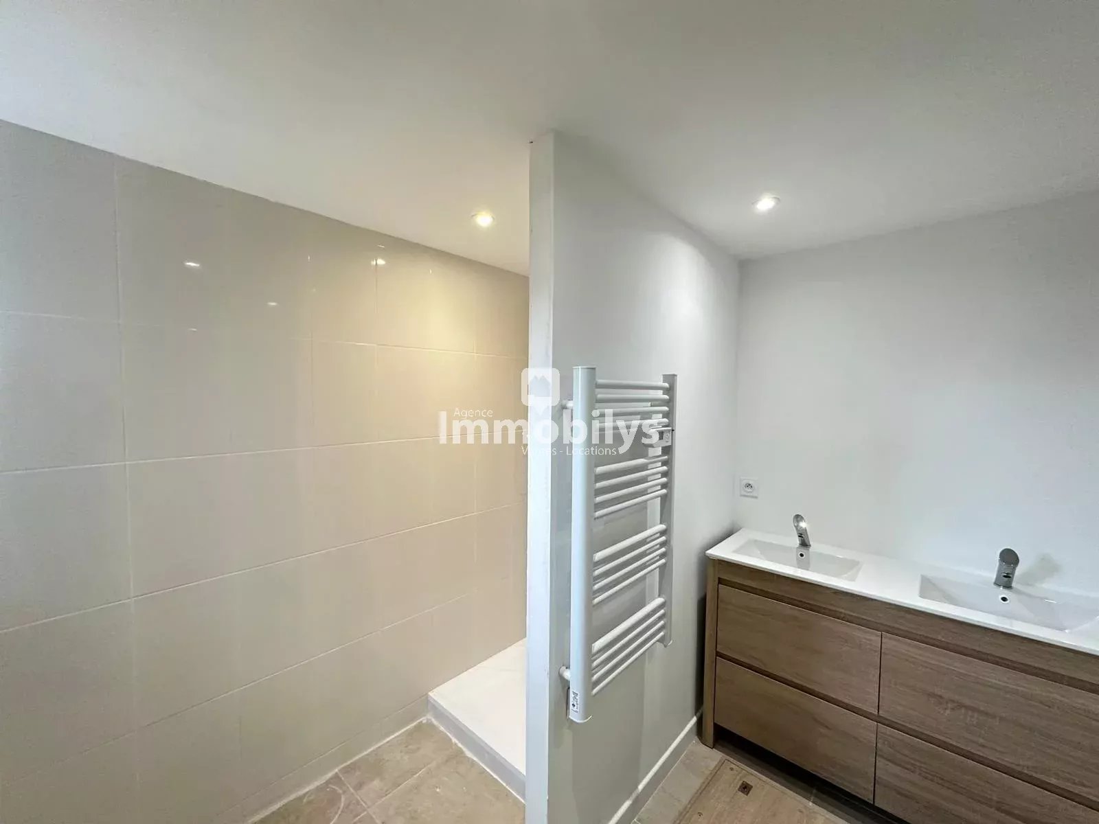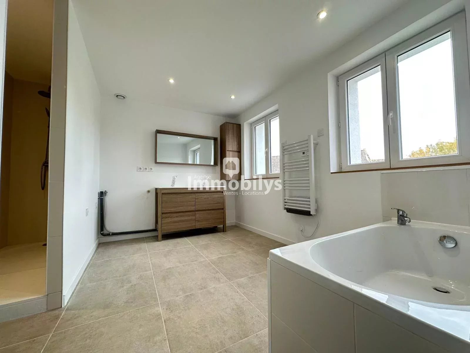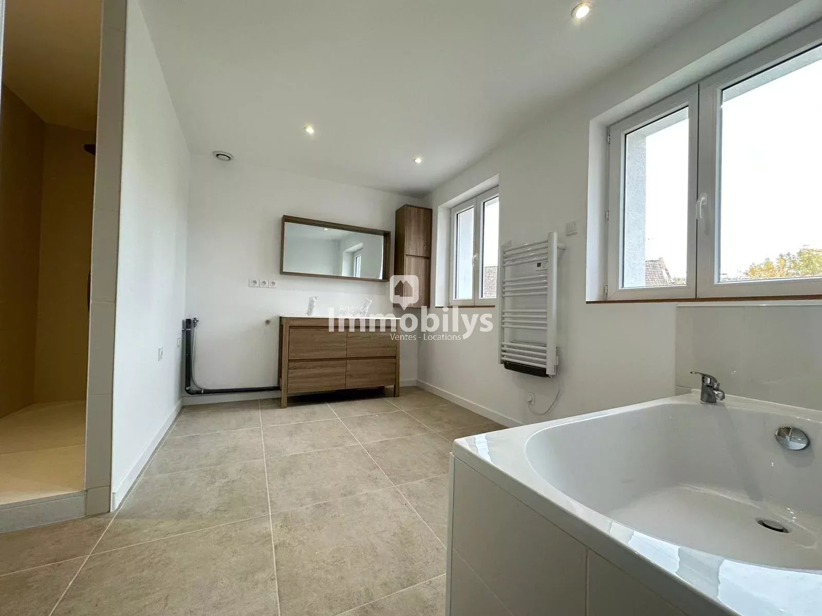 Il offre au rez de chaussé un beau séjour ouvert sur cuisine équipée , 2 chambres, 2 salles de bains, du rangement.
